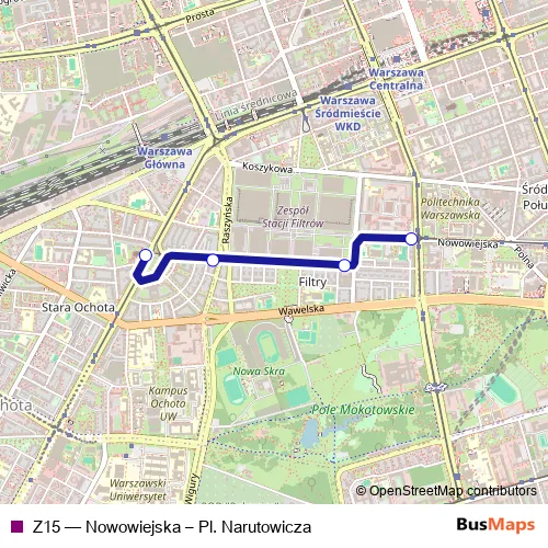 Click here to view the nearest Z15 - Nowowiejska – Pl. Narutowicza bus stop.