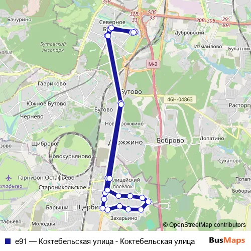 е91 Bus - Коктебельская улица - Коктебельская улица
