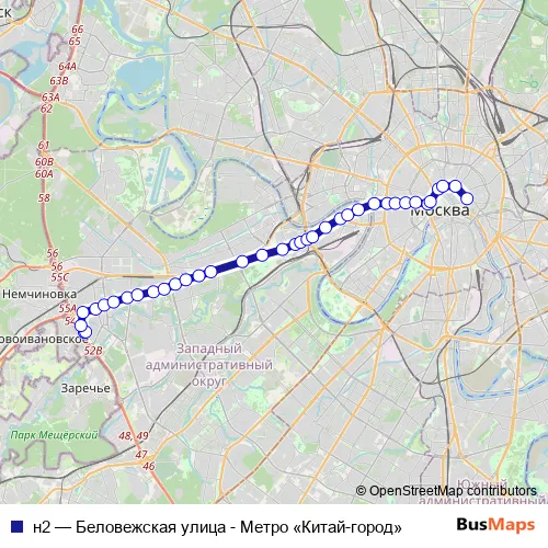 Bus н2 - Беловежская улица - Метро «Китай-город» Schedule in Moscow