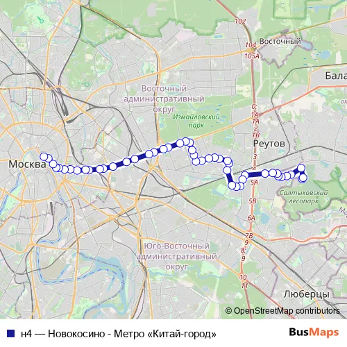 Bus н4 - Новокосино - Метро «Китай-город» Schedule in Moscow