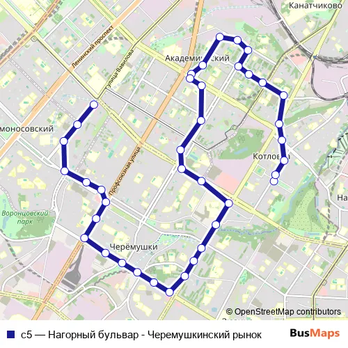 Click here to view the nearest с5 - Нагорный бульвар - Черемушкинский рынок bus stop.