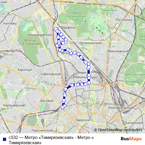 Bus с532 - Метро «Тимирязевская» - Метро «Тимирязевская» Schedule in Moscow