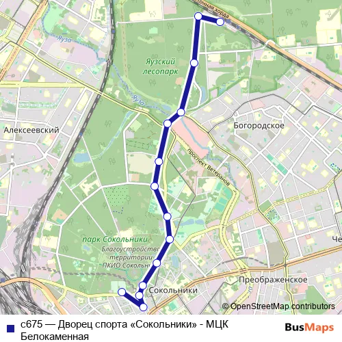 Click here to view the nearest с675 - Дворец спорта «Сокольники» - МЦК Белокаменная bus stop.