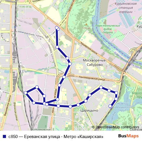 The first stop of the с850 bus route is Метро «Каширская» and the last stop is Ереванская улица. с850 (Ереванская улица - Метро «Каширская») is operational during по выходным.