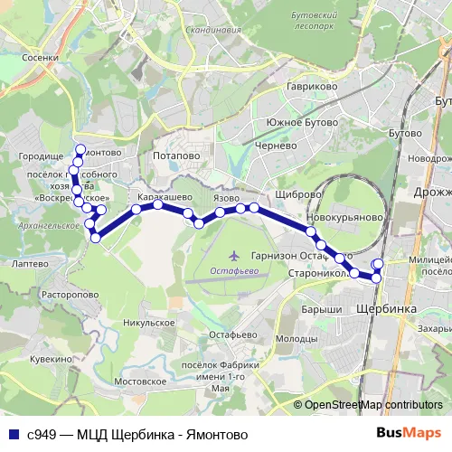 Bus с949 - МЦД Щербинка - Ямонтово in Moscow: Stops & Timetable