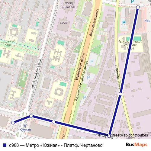 Bus с988 - Метро «Южная» - Платф. Чертаново in Moscow: Stops & Timetable