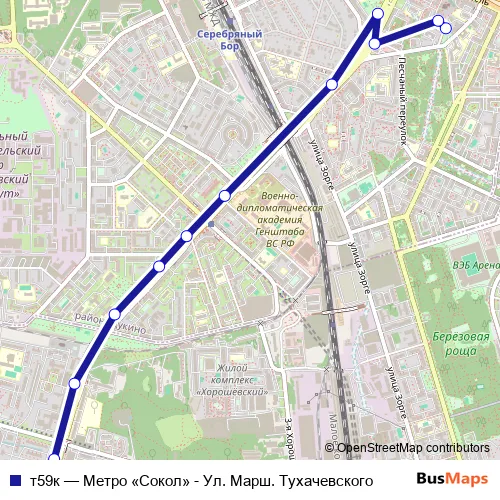 Click here to view the nearest т59к - Метро «Сокол» - Ул. Марш. Тухачевского bus stop.