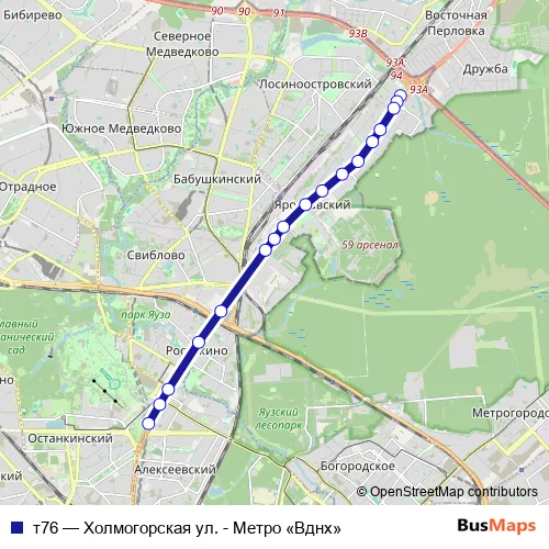 Click here to view the nearest т76 - Холмогорская ул. - Метро «Вднх» bus stop.