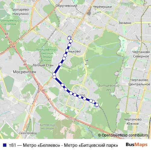 Bus т81 - Метро «Беляево» - Метро «Битцевский парк» in Moscow: Stops & Timetable