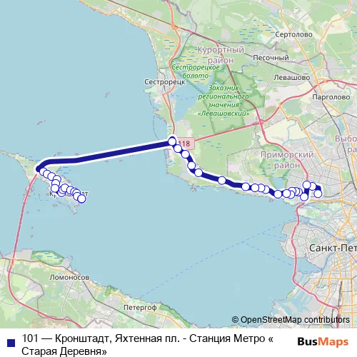 101 (Кронштадт, Яхтенная пл. - Станция Метро «Старая Деревня») Bus in Saint Petersburg