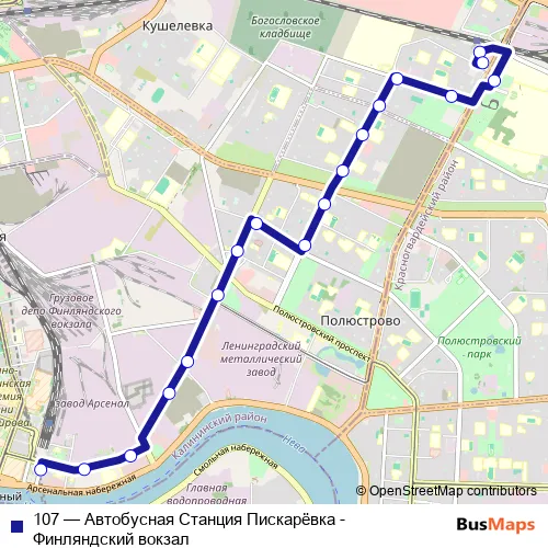 Bus 107 - Автобусная Станция Пискарёвка - Финляндский вокзал in Saint Petersburg: Stops & Timetable