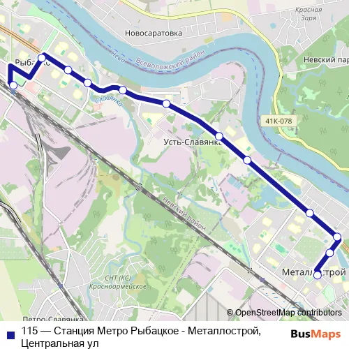 Bus 115 - Станция Метро Рыбацкое - Металлострой, Центральная ул Schedule in Saint Petersburg