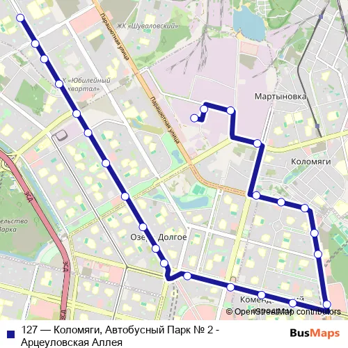 Click here to view the nearest 127 - Коломяги, Автобусный Парк № 2 - Арцеуловская Аллея bus stop.