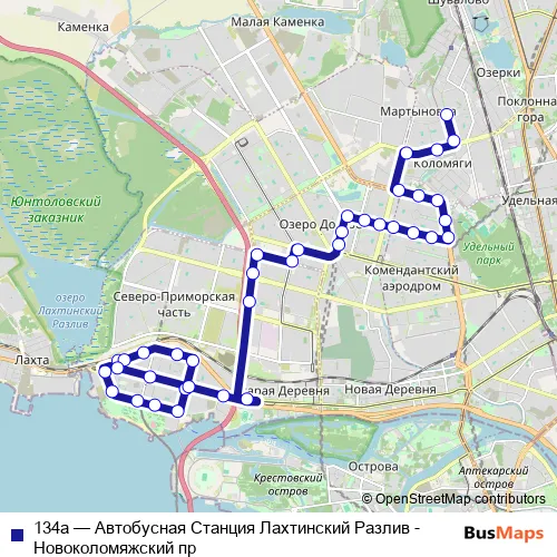 Bus 134а - Автобусная Станция Лахтинский Разлив - Новоколомяжский пр: Full Schedule in Saint Petersburg