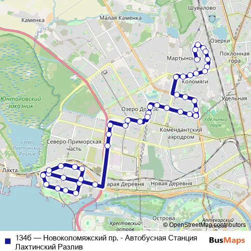 Bus 134б - Новоколомяжский пр. - Автобусная Станция Лахтинский Разлив: Full Schedule in Saint Petersburg