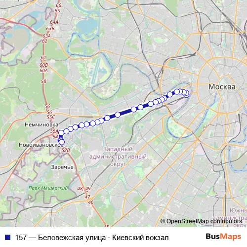 Click here to view the nearest 157 - Беловежская улица - Киевский вокзал bus stop.