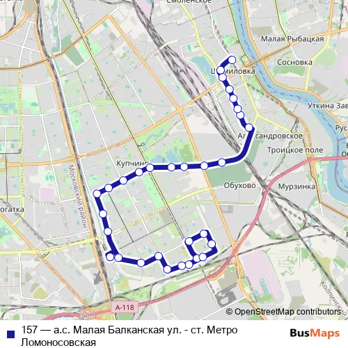Bus 157 - а.с. Малая Балканская ул. - ст. Метро Ломоносовская Schedule in Saint Petersburg