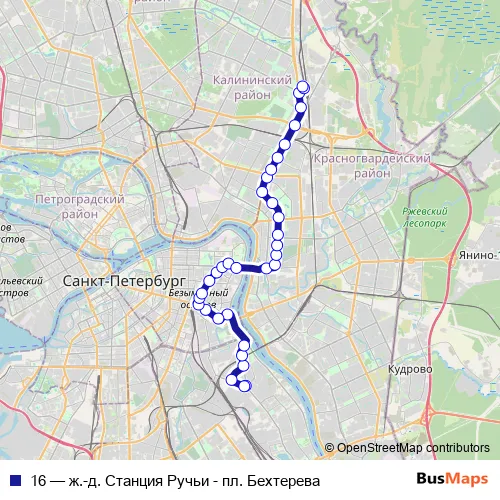 Конечная Станция ж.-д. Станция Ручьи (Посадки И Высадки Нет) ➞ пл. Бехтерева (Оборотная, Посадки И Высадки Нет)