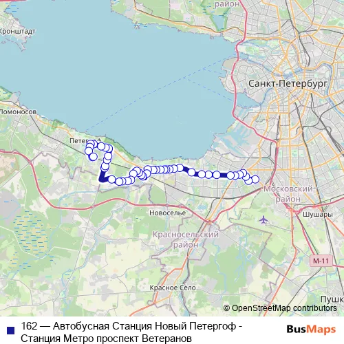 Bus 162 - Автобусная Станция Новый Петергоф - Станция Метро проспект Ветеранов Schedule in Saint Petersburg