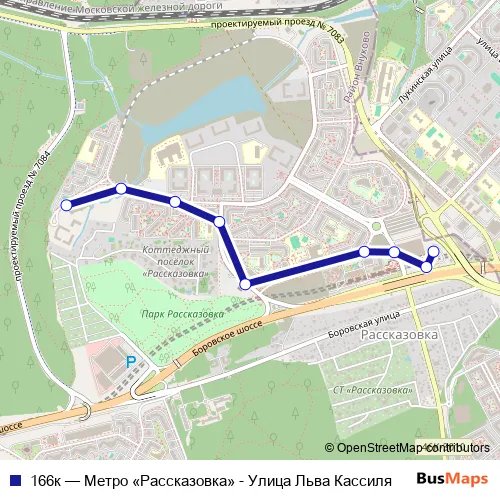 Click here to view the nearest 166к - Метро «Рассказовка» - Улица Льва Кассиля bus stop.