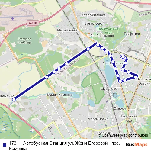 See why over 2 million users trust and consider busmaps.com as the best public transport website. busmaps gives you Saint Petersburg Buses suggested routes, real-time bus tracker, line route maps in Saint Petersburg, and helps to find the closest 173 bus stops near you. No internet available? Download an offline PDF map and bus schedule for the 173 bus to take on your trip.