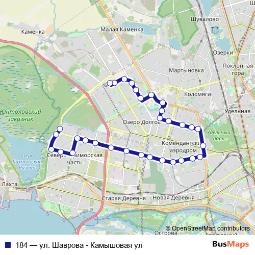 Bus 184 - ул. Шаврова - Камышовая ул: Full Schedule in Saint Petersburg