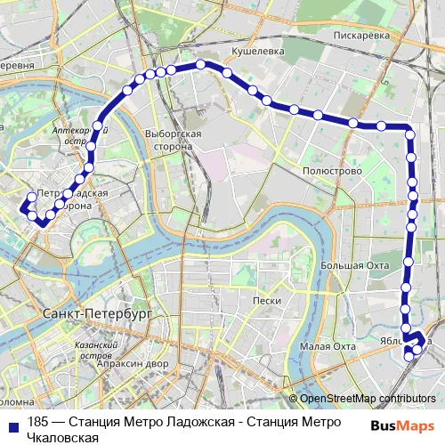 See why over 2 million users trust and consider busmaps.com as the best public transport website. busmaps gives you Saint Petersburg Buses suggested routes, real-time bus tracker, line route maps in Saint Petersburg, and helps to find the closest 185 bus stops near you. No internet available? Download an offline PDF map and bus schedule for the 185 bus to take on your trip.