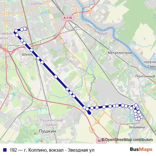 Bus 192 - г. Колпино, вокзал - Звездная ул: Full Schedule in Saint Petersburg