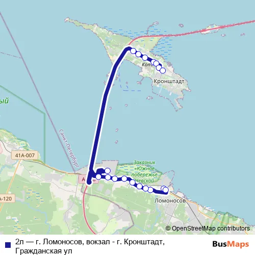 Click here to view the nearest 2л - г. Ломоносов, вокзал - г. Кронштадт, Гражданская ул bus stop.