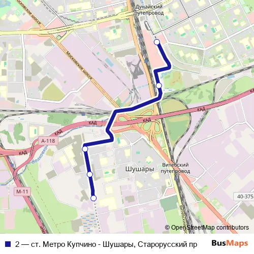 Click here to view the nearest 2 - ст. Метро Купчино - Шушары, Старорусский пр tram stop.