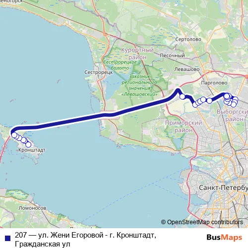 Bus 207 - ул. Жени Егоровой - г. Кронштадт, Гражданская ул Schedule in Saint Petersburg
