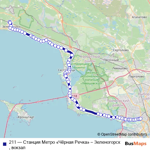 211 Bus - Станция Метро «Чёрная Речка» – Зеленогорск, вокзал