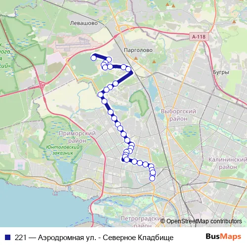 Bus 221 - Аэродромная ул. - Северное Кладбище Schedule in Saint Petersburg