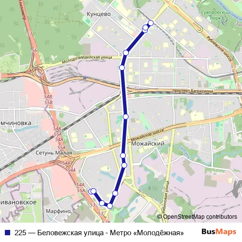Click here to view the nearest 225 - Беловежская улица - Метро «Молодёжная» bus stop.