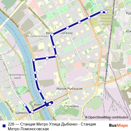 Click here to view the nearest 228 - Станция Метро Улица Дыбенко - Станция Метро Ломоносовская bus stop.