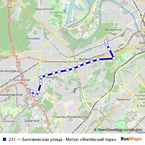 231 Bus - Беловежская улица - Метро «Филёвский парк»