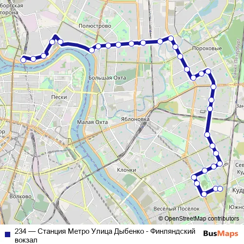 Click here to view the nearest 234 - Станция Метро Улица Дыбенко - Финляндский вокзал bus stop.