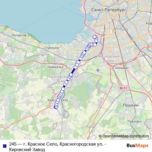 See why over 2 million users trust and consider busmaps.com as the best public transport website. busmaps gives you Saint Petersburg Buses suggested routes, real-time bus tracker, line route maps in Saint Petersburg, and helps to find the closest 245 bus stops near you. No internet available? Download an offline PDF map and bus schedule for the 245 bus to take on your trip.
