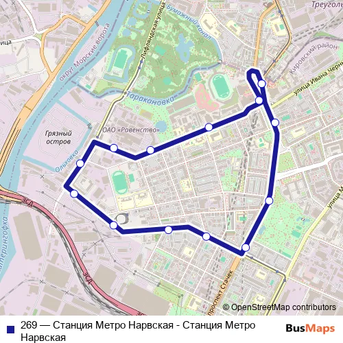 Bus 269 - Станция Метро Нарвская - Станция Метро Нарвская Schedule in Saint Petersburg