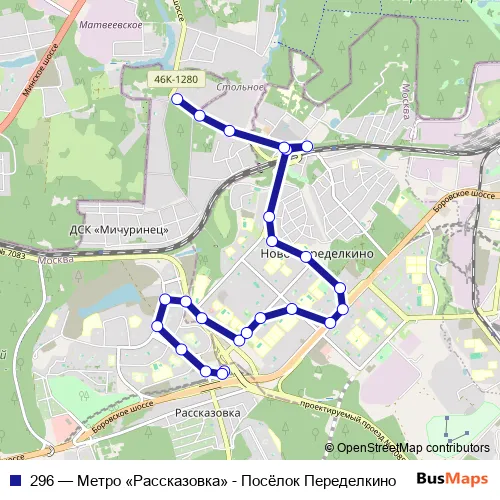 Bus 296 - Метро «Рассказовка» - Посёлок Переделкино: Full Schedule in Odintsovo