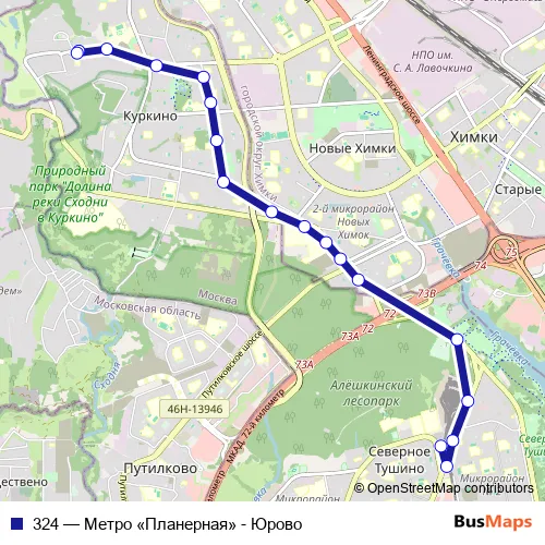 See why over 2 million users trust and consider busmaps.com as the best public transport website. busmaps gives you Khimki Buses suggested routes, real-time bus tracker, line route maps in Khimki, and helps to find the closest 324 bus stops near you. No internet available? Download an offline PDF map and bus schedule for the 324 bus to take on your trip.