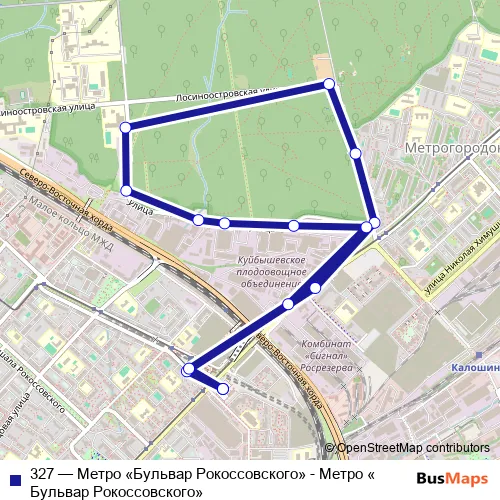 Bus 327 - Метро «Бульвар Рокоссовского» - Метро «Бульвар Рокоссовского» Schedule in Moscow