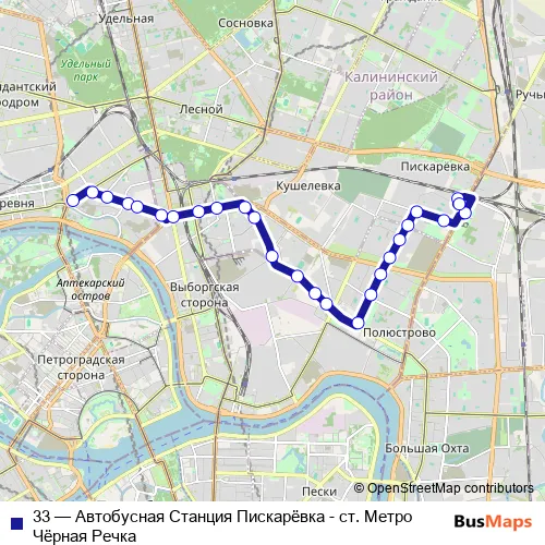Bus 33 - Автобусная Станция Пискарёвка - ст. Метро Чёрная Речка: Full Schedule in Saint Petersburg