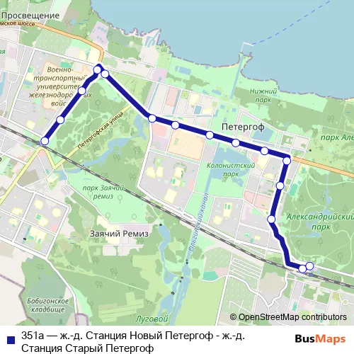351а Bus - ж.-д. Станция Новый Петергоф - ж.-д. Станция Старый Петергоф