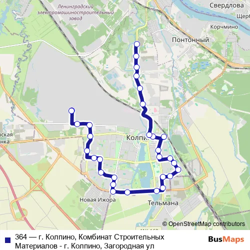 Bus 364 - г. Колпино, Комбинат Строительных Материалов - г. Колпино, Загородная ул in Kolpino: Stops & Timetable