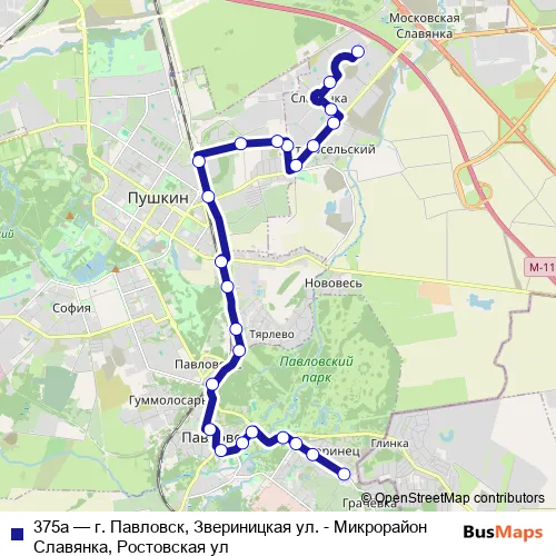 Славянка, Ростовская ул. – г. Павловск, Звериницкая ул.