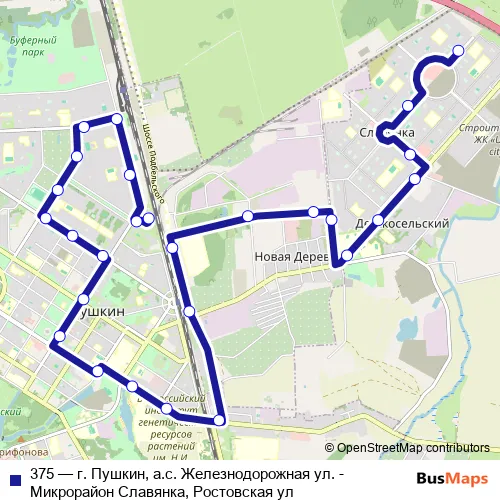 Bus 375 - г. Пушкин, а.с. Железнодорожная ул. - Микрорайон Славянка, Ростовская ул Schedule in Saint Petersburg