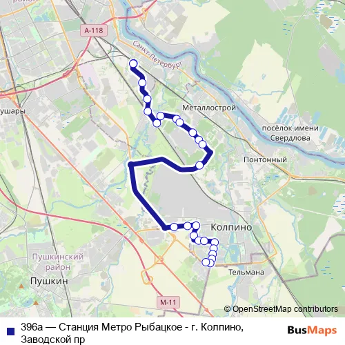 Bus 396а - Станция Метро Рыбацкое - г. Колпино, Заводской пр: Full Schedule in Kolpino