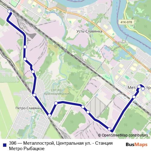 Bus 396 - Металлострой, Центральная ул. - Станция Метро Рыбацкое Schedule in Saint Petersburg