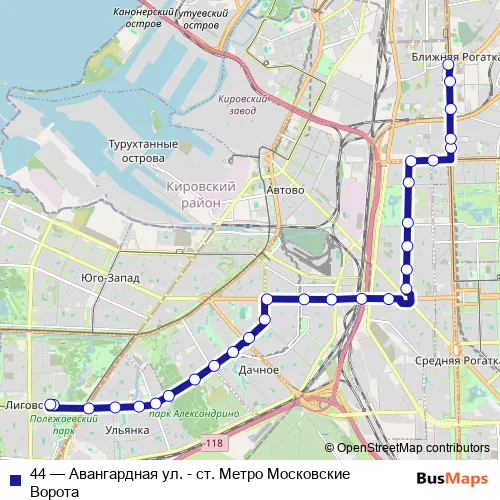 Trolleybus 44 - Авангардная ул. - ст. Метро Московские Ворота in Saint Petersburg: Stops & Timetable